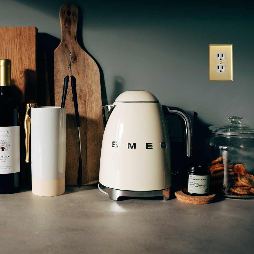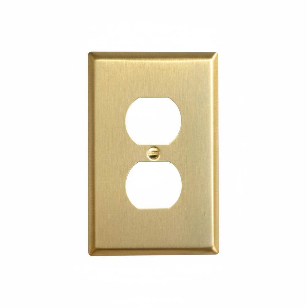 Brushed Brass 1 Gang Duplex Outlet Cover (Mid Size)