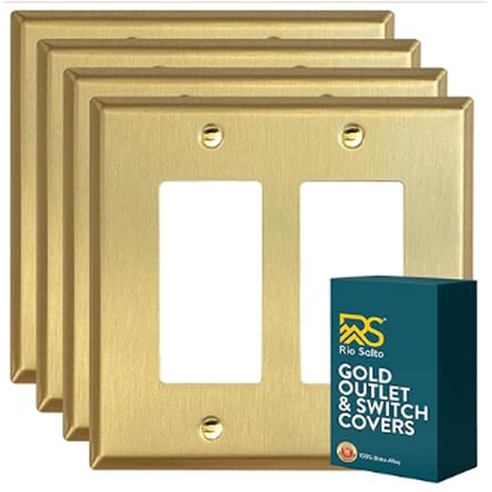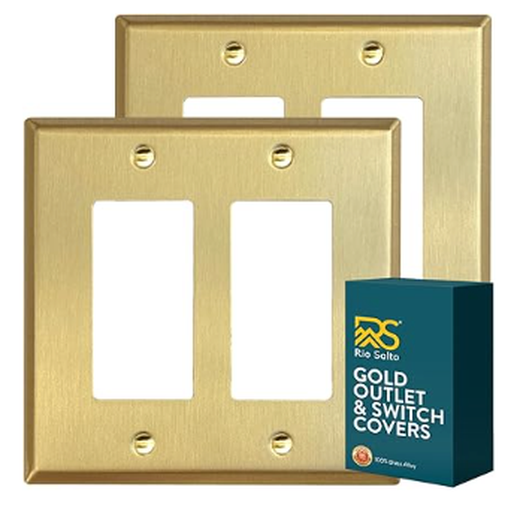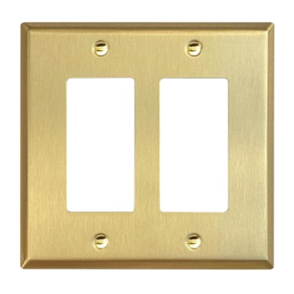 Brushed Brass 2 Gang Rocker Switchplate (Mid Size)
