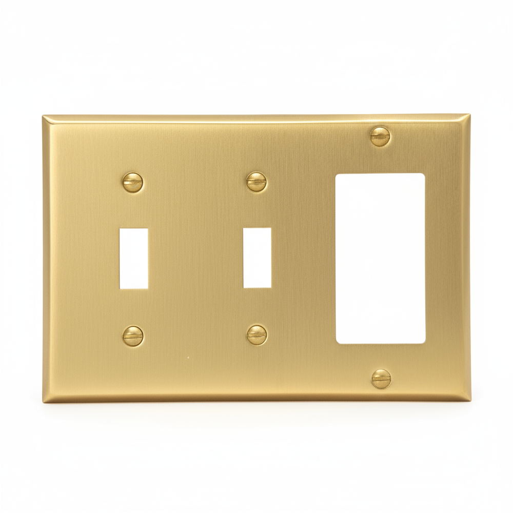Brushed Brass 3 Gang (2 Toggle 1 Rocker Combo)